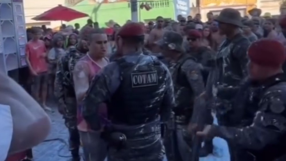 Um homem foi detido durante o Carnaval de Aracati, no Ceará, após gravar e publicar nas redes sociais um vídeo em que um amigo joga goma — uma mistura comum na brincadeira do mela-mela — contra policiais que faziam a segurança do evento. As imagens foram divulgadas no domingo (15/02), e, após a detenção, o rapaz gravou um novo vídeo pedindo desculpas.