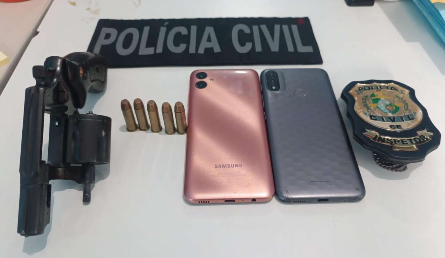 Durante a abordagem, o suspeito estava portando um revólver calibre .38 e munições compatíveis. Ele já possuía antecedentes por tráfico de drogas, crimes contra a administração pública e posse ilegal de arma. Além de ter a prisão preventiva cumprida, foi autuado em flagrante por posse irregular de arma com numeração suprimida. As investigações da PCCE continuam, pois há indícios de seu envolvimento em outro homicídio registrado no dia 12 deste mês, também em Parambu.