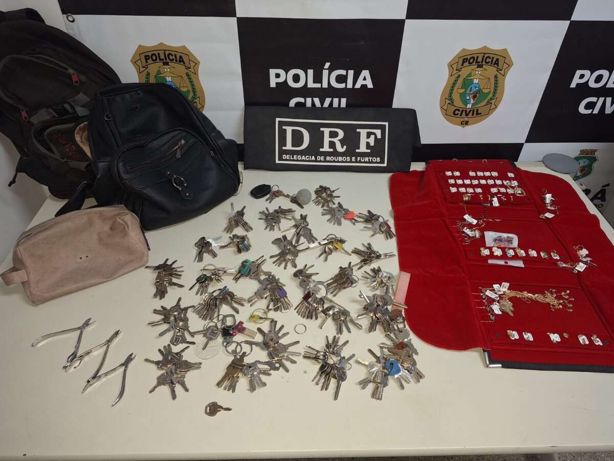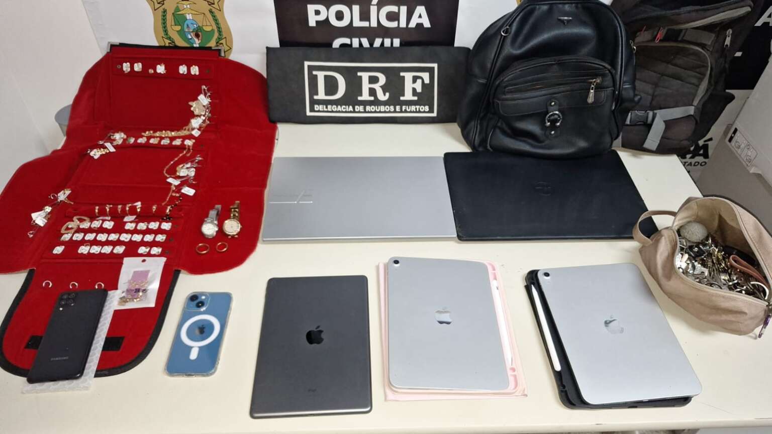 A Polícia Civil do Estado do Ceará (PCCE) prendeu em flagrante, na terça-feira (03/01), no bairro Castelão (AIS 19), uma mulher de 43 anos com nove passagens anteriores pelo mesmo tipo de crime. Ela é suspeita de praticar um furto qualificado no bairro São Gerardo, na Área Integrada de Segurança Pública 05 (AIS 05) de Fortaleza. Durante a operação, foram apreendidos celulares, notebook, relógios, tablets e um veículo usado na ação criminosa.
